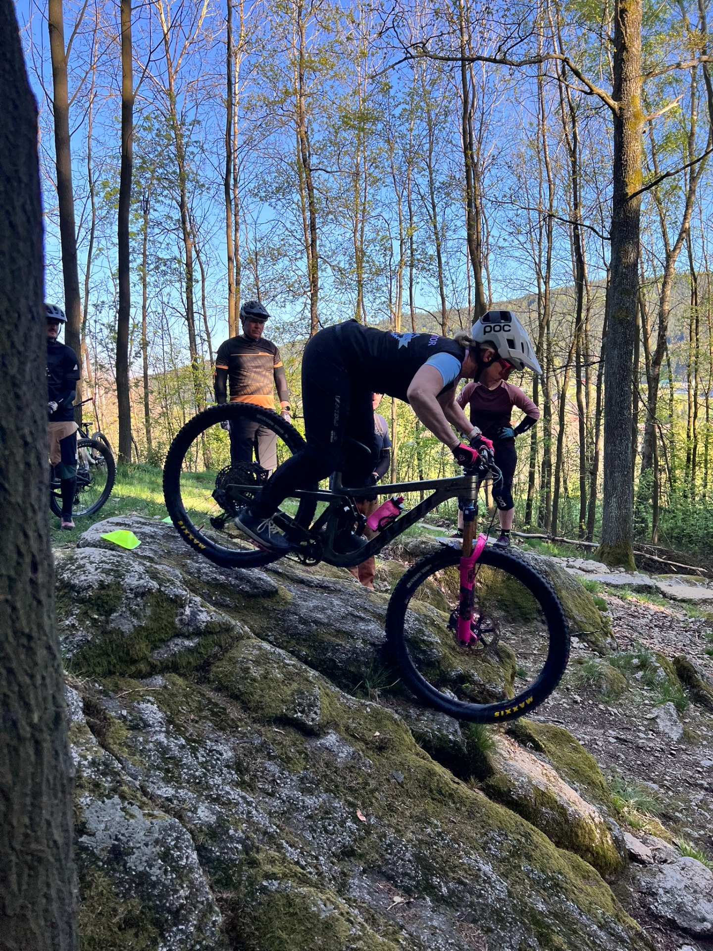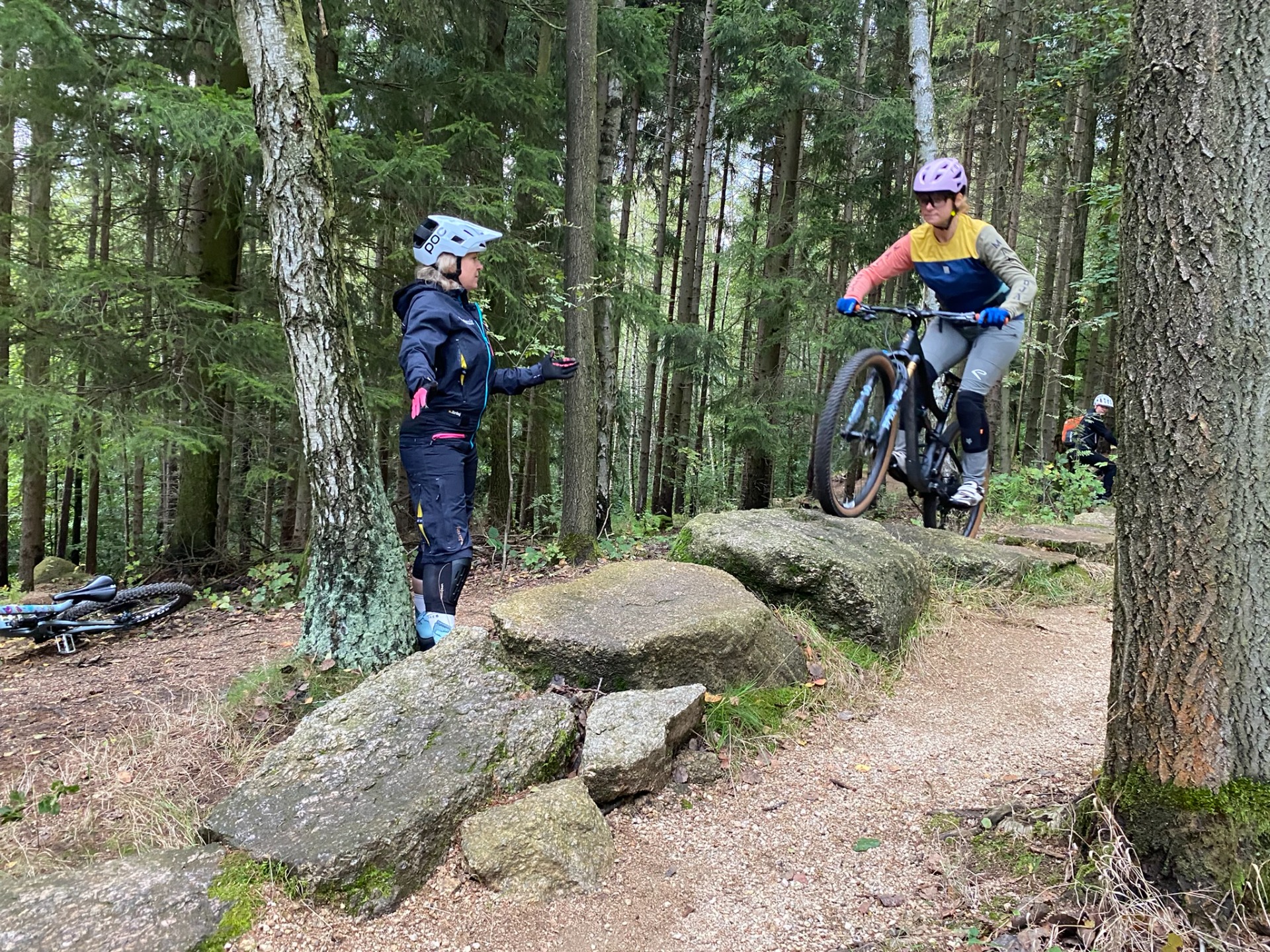Cílem našeho společného ježdění je osvojit si jízdu v těžším terénu s přírodními překážkami - kořeny a kameny, prudké sjezdy. Pracovat s pozicí a rovnováhou, čtením terénu a přidat nadhoz předního kola.